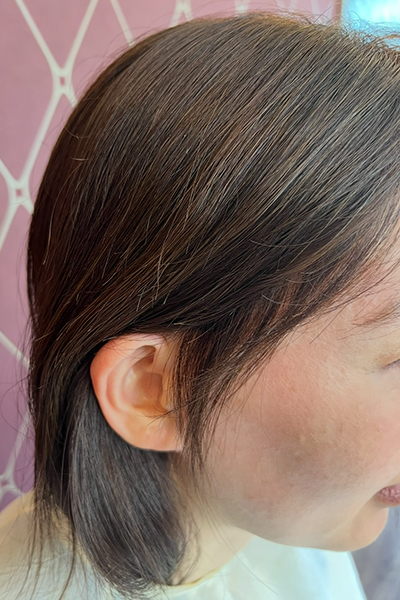 絹髪ウィッグ顔回り産毛カット後装着イメージ